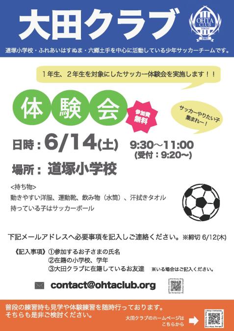 • 道塚小:時間厳守。5分前に入ってはだめ。終了時間に完全撤収。
