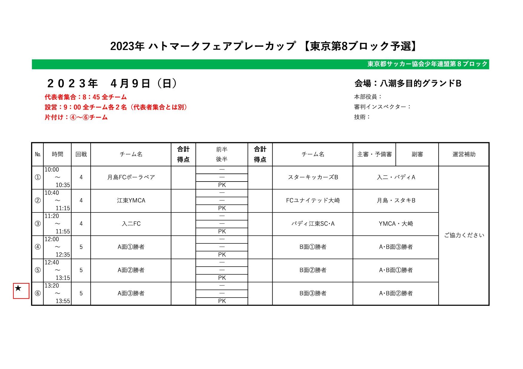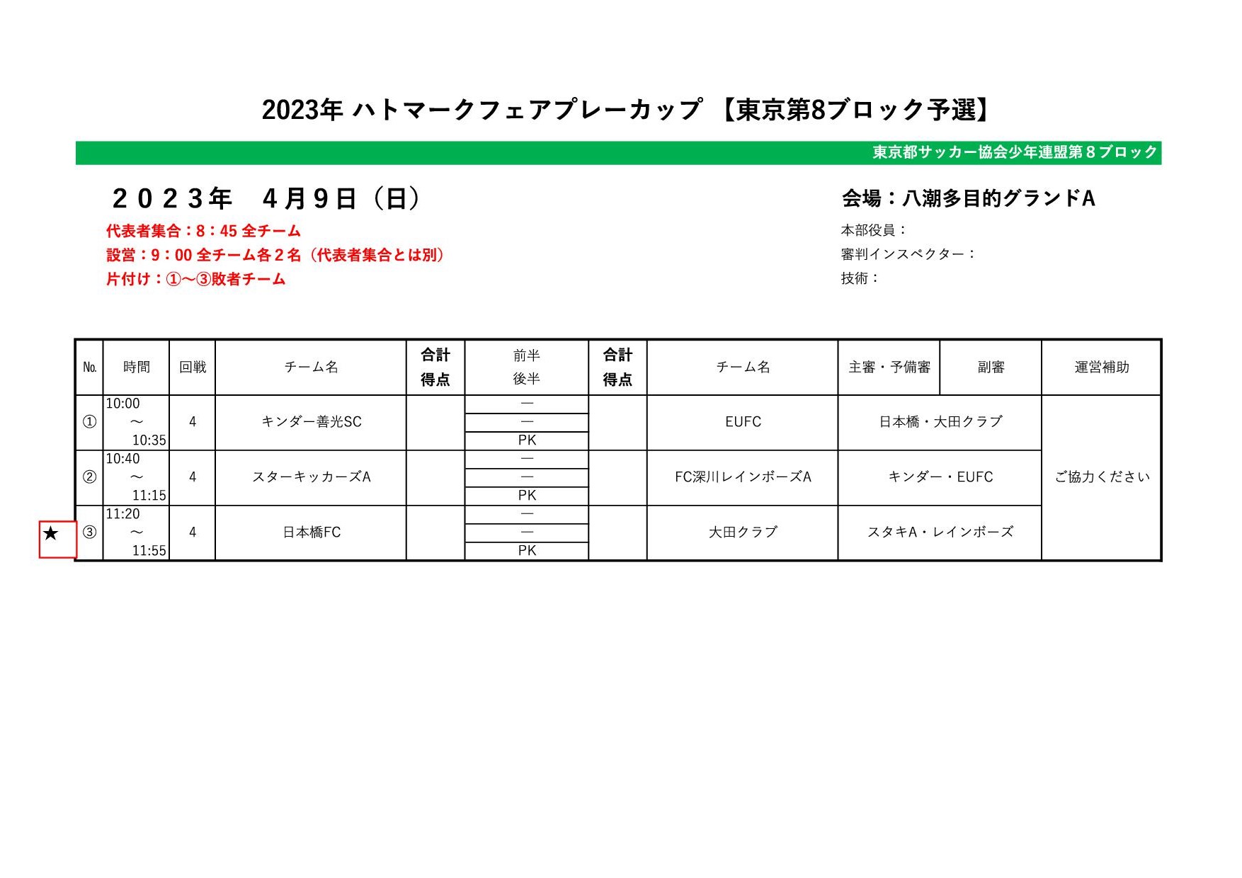 4/9 ハトマークスケジュール