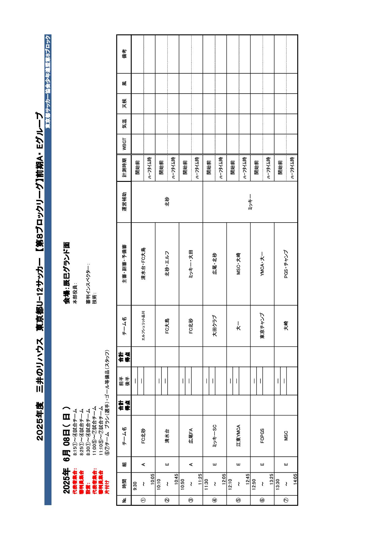 ステータス 終了 6/8 第8ブロック前期リハウスリーグ スケジュール 2025年度 6月8日(日)に予定されている第8ブロック前期リハウスリーグのスケジュールです。 20250608【A&E】リハウスリーグ_対戦表.pdf