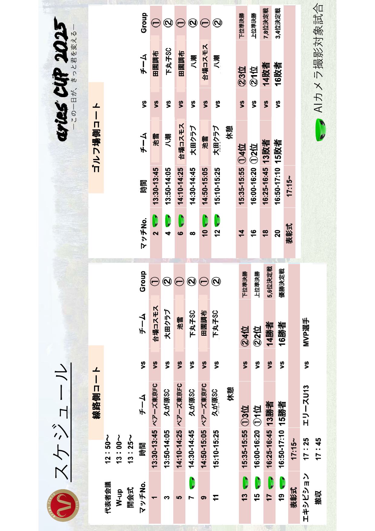 ステータス 終了 7/6 エリースカップU12 2025年度 7月6日(日)に予定されているエリースカップU12のスケジュールです。詳細はPDFファイルを参照してください。 【第3回】エリースカップ20250706.pdf