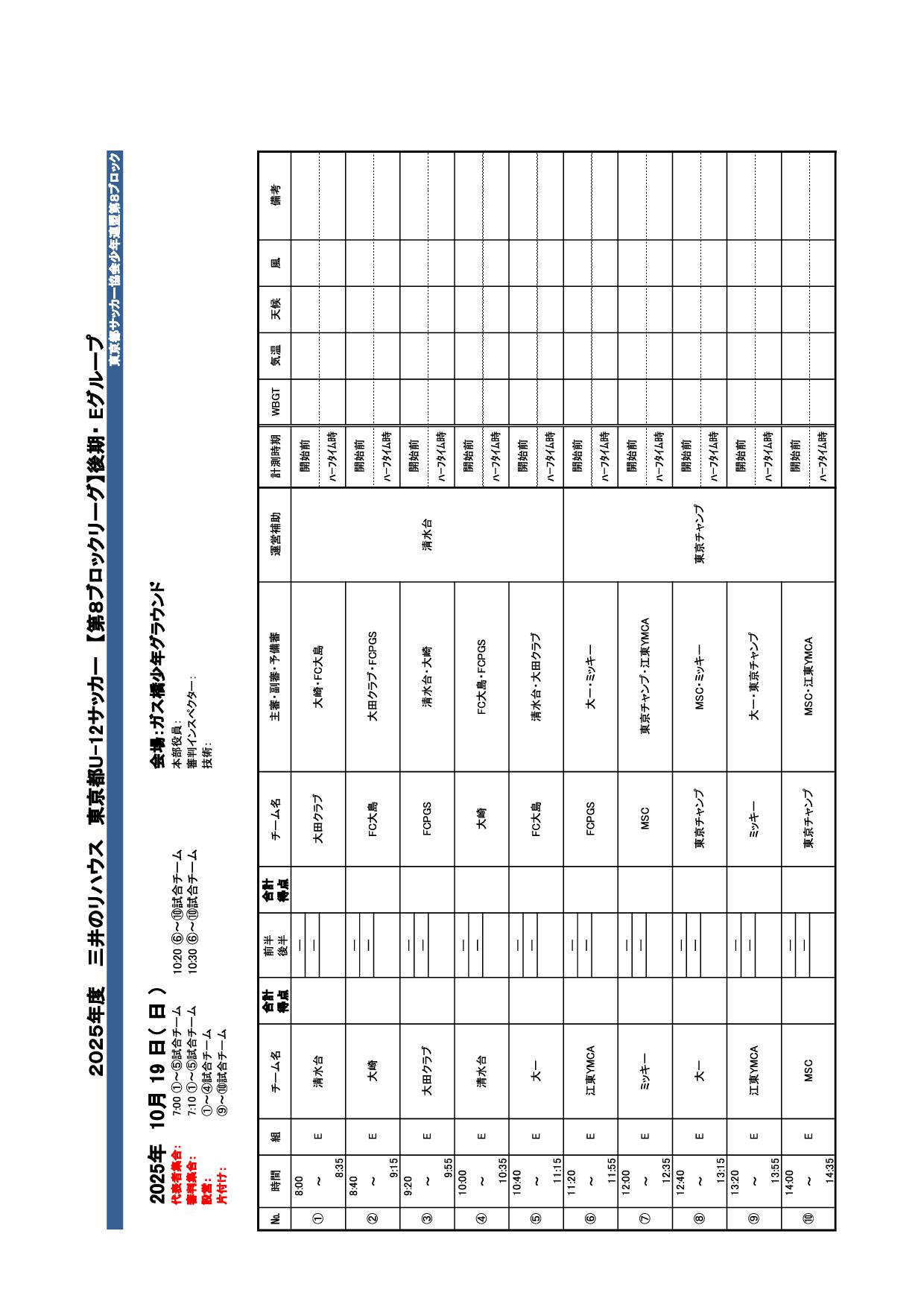 ステータス 終了 10/19 8ブロック後期リハウスリーグ スケジュール 2025年度 10月19日(日)に予定されている8ブロック後期リハウスリーグのスケジュールです。 【E】リハウスリーグ_対戦表10.19ガス橋少年.pdf