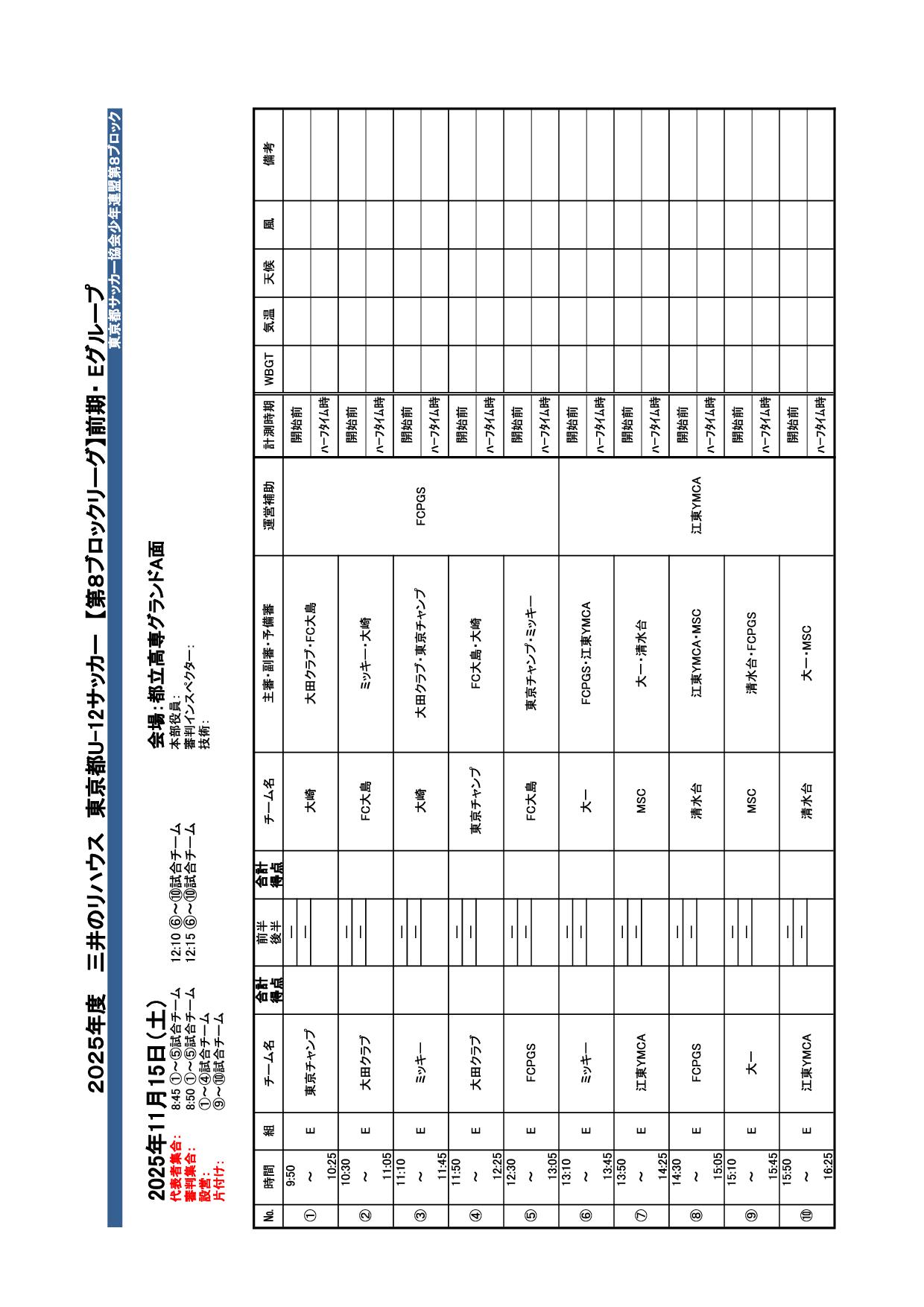 ステータス 終了 11/15 8ブロック後期リハウスリーグ スケジュール 2025年度 11月15日(土)に予定されている8ブロック後期リハウスリーグのスケジュールです。※土曜日です。 8thrihausuE_20251115kosenA.pdf