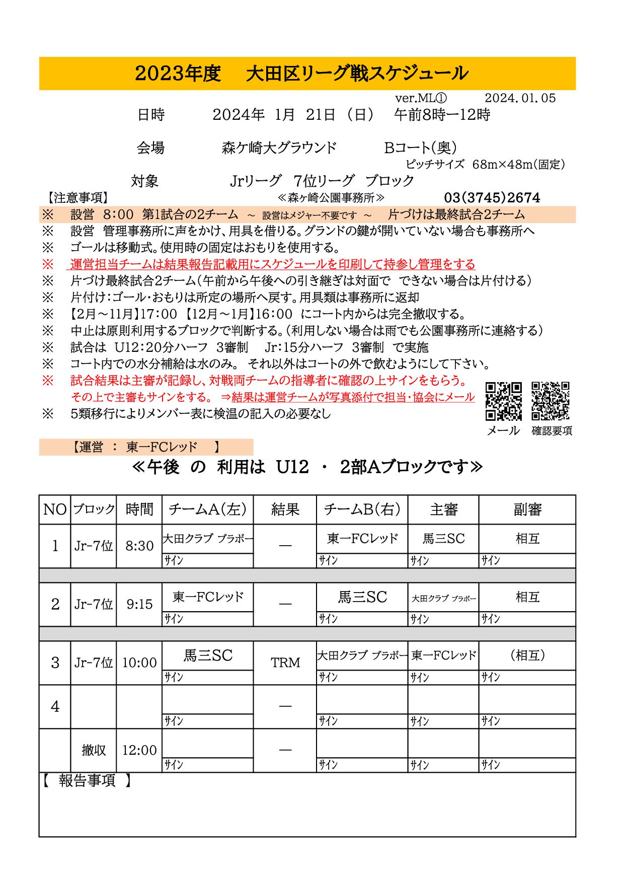 ステータス 中止 1/21 大田区ジュニアリーグ(7位)スケジュール 2023年度 1月21日(日)に予定されているジュニアリーグ7位ブロックスケジュールです。 ③2024_0121AM_森ケ崎大B_Jr7位.pdf