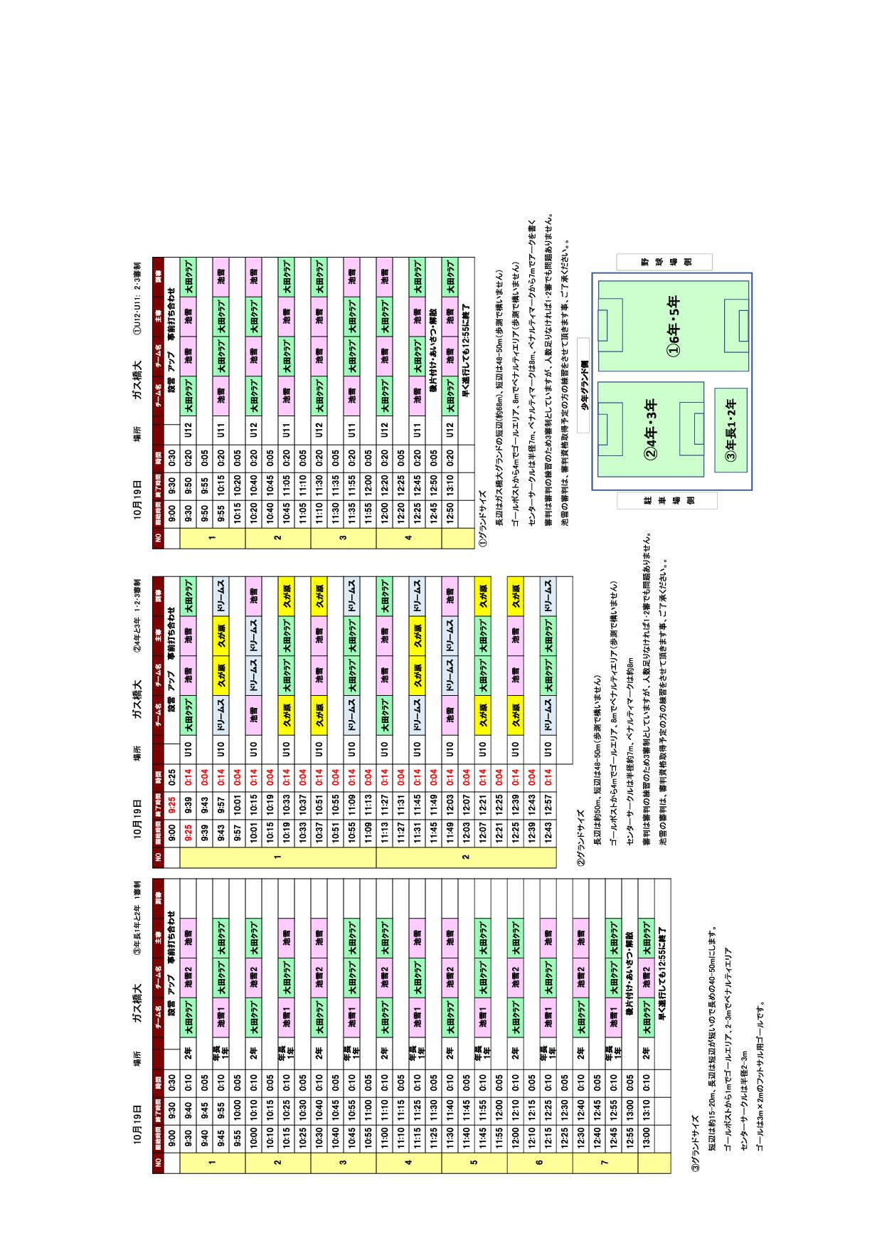 10月19日(土)に予定されている練習試合のスケジュールです。