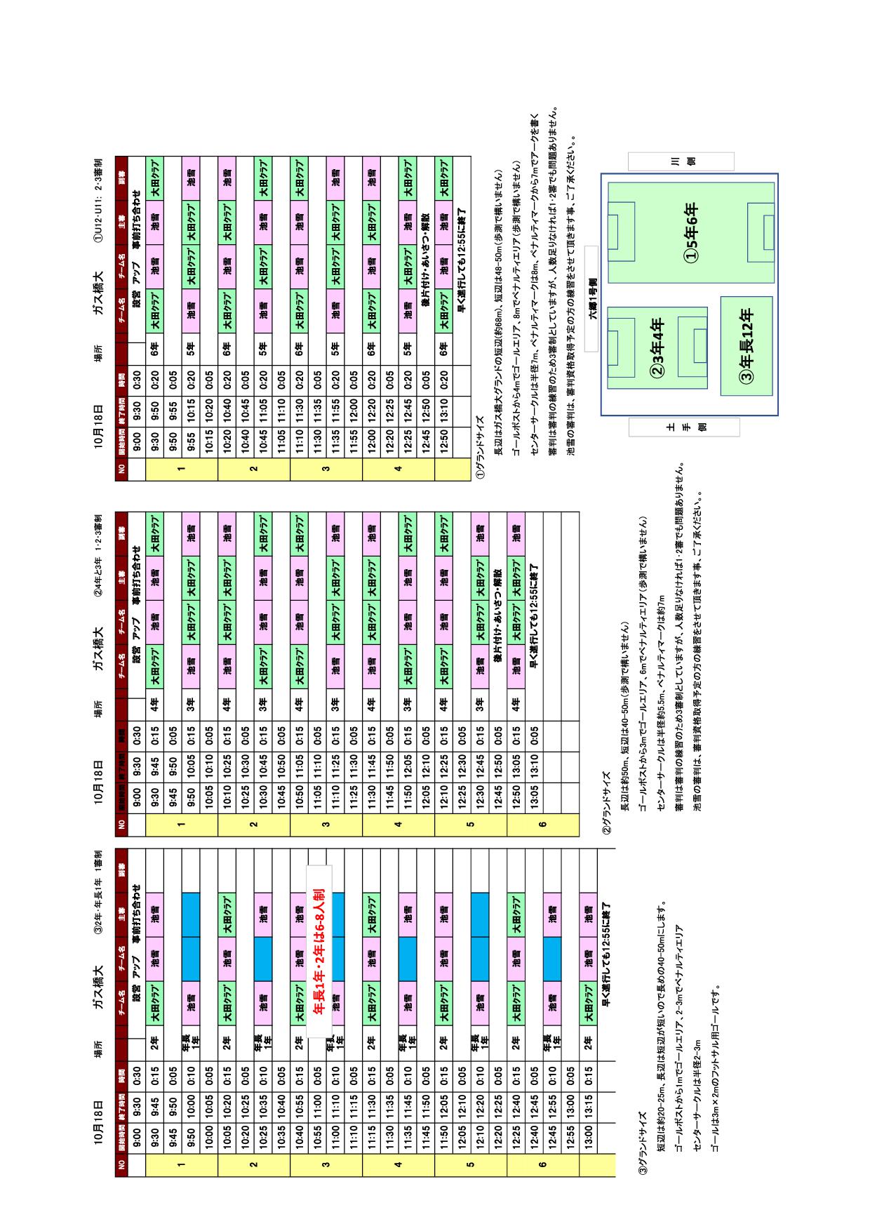 10月18日(土)に予定されている全学年vs池雪のスケジュールです。